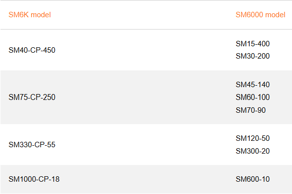 Please use the table below to determine the model number for the SM6K Series based on the SM 6000 model. Thanks to autoranging, multiple older models can be replaced by a single version of the new series.